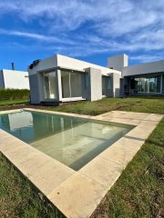 Esta encantadora casa cuenta con un diseño moderno y funcional, ideal para aquellos que buscan comodidad y estilo. Al ingresar, te recibirán un amplio living-comedor con un acogedor hogar y una cocina integrada, perfecta para disfrutar de momentos especiales con familia y amigos. Además, la casa cuenta con un lavadero contiguo a la cocina, lo que facilita las tareas del hogar. También dispone de un toilette para mayor comodidad de los residentes y visitantes. En cuanto a la distribución de los dormitorios, la casa cuenta con tres dormitorios, el dormitorio principal en suite y los otros dos que comparten un baño completo en el medio. Un amplio pasillo con placares y espacio para un escritorio brinda un área adicional para trabajar o estudiar cómodamente. El cuarto principal en suite es el lugar perfecto para relajarse y descansar, con amplios placares para guardar todas tus pertenencias. En el exterior, encontrarás una hermosa galería con una parrilla y una mesada con bacha, ideal para disfrutar de reuniones al aire libre y deliciosas comidas al fresco. El amplio jardín cuenta con una piscina de natación y un sistema de riego por aspersión para mantenerlo siempre verde y hermoso. La casa cuenta con losa radiante, lo que brinda una cálida y confortable temperatura en todas las estaciones del año. Todas las aberturas son de aluminio con DVH de la línea Modena, lo que garantiza un excelente aislamiento térmico y acústico. El terreno tiene una extensión de 700 metros cuadrados, mientras que la casa cuenta con 140 metros cuadrados cubiertos, ofreciendo amplios espacios para disfrutar en familia. Además, la casa cuenta con un equipo de filtrado de la piscina, lo que facilita su mantenimiento y garantiza su agua cristalina en todo momento. ¡No pierdas la oportunidad de vivir en esta hermosa casa en el barrio La Reserva Hudso